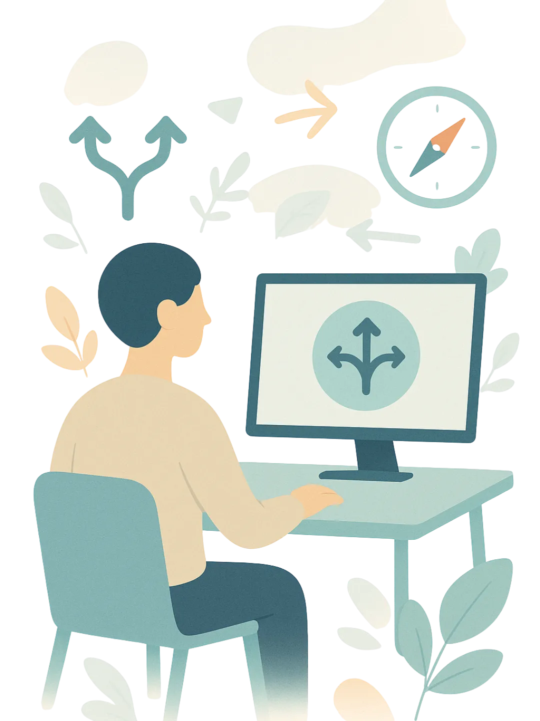 Veel mensen denken dat ze “achterlopen” of iets missen, terwijl juist in deze fase overzicht vaak ontbreekt. Dat is normaal. Scheidingkompas is er niet om je ergens doorheen te duwen of richting een beslissing te sturen, maar om je te helpen helder te denken en rust te creëren.